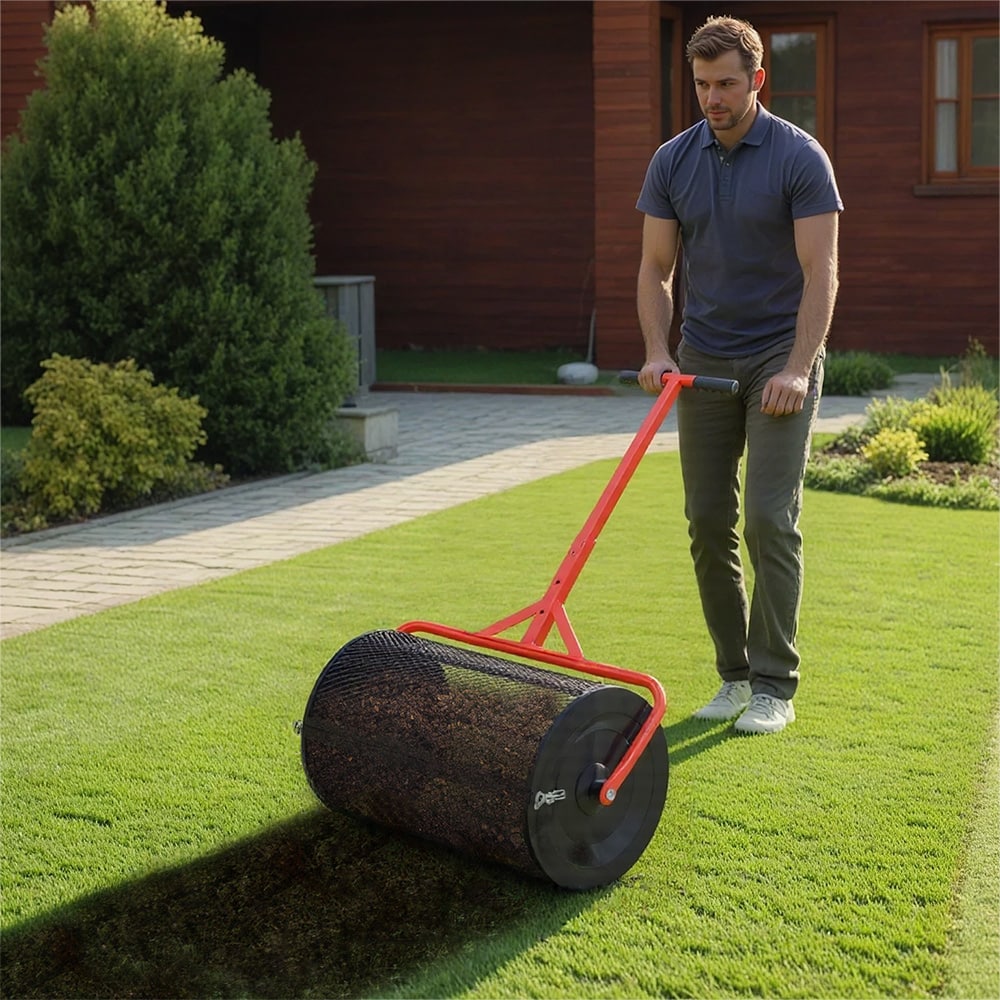 - Rozprowadź na trawniku warstwę produktu o grubości 3–5 mm, używając rąk, walca siatkowego lub posypywarki.