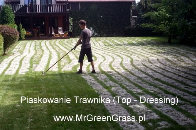 Piaskowanie trawnika to posypywanie murawy cienką warstwą (ok. 3-5 mm) różnorodnego materiału np. piasku rzecznego zmieszanego z ziemią, glinką, torfem i innymi dodatkami, takimi jak kreda lub kompost. Rodzaj mieszanki i jej proporcje uzależnione są od typu struktury gleby na której rośnie trawnik. Każda mieszanka piaskowa powinna zostać przygotowana indywidualnie w zależności od potrzeb trawnika. Należy używać tylko sprawdzonych podłoży, wolnych od zanieczyszczeń oraz chwastów. Na glebach piaszczystych stosujemy mieszankę bogatą w substrat torfowy i glinę, a na glebach ciężkich, gliniastych odwrotnie – z przeważającą zawartością piasku odpowiedniej granulacji i rodzaju.