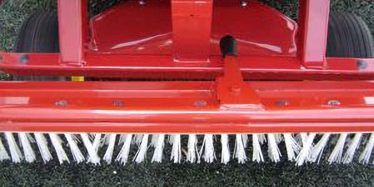 Szczotkowanie wykonujemy w celu rozprostowania i odświeżenia włókien maty oraz rozluźnienia górnej warstwy granulatu. Zabieg ten usprawnia górny system drenażowy boiska i poprawia jego estetykę. Boisko należy czyścić i konserwować średnio 4 razy w roku.