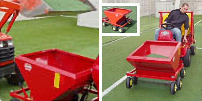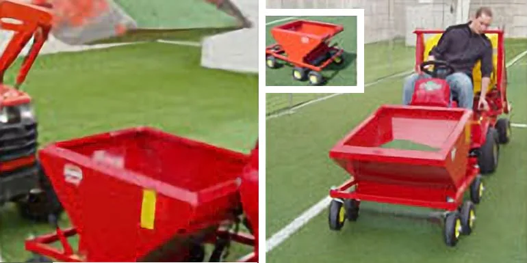 Corocznie należy kontrolować płytę boiska pod kątem materiału do wypełnienia, a granulat systematycznie uzupełniać za pomocą specjalistycznego urządzenia do jego rozprowadzania. Niektóre obszary na boisku są intensywniej użytkowane. W szczególności na obszarach podbramkowych i w narożnikach należy regularnie przeprowadzać kontrolę i uzupełniać granulat. Miejscami można zrobić ręcznie, bez stosowania urządzenia do rozprowadzania, natomiast uzupełniając materiał na całej powierzchni boiska, należy skorzystać z przeznaczonej do tego celu maszyny.
